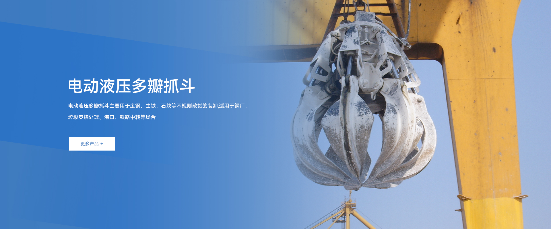主導產品為各型港口、碼頭全系列抓斗、抓具、料斗及專用環保設備
